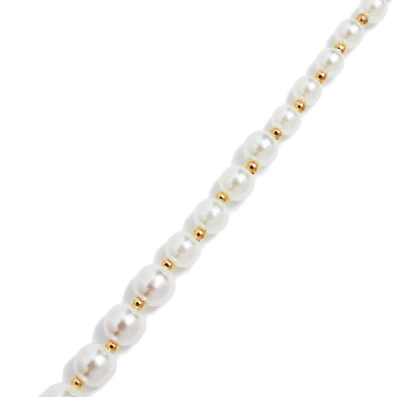 小さなビーズがパールとパールを繋ぎ合わせるように連なっており、存在感があります。