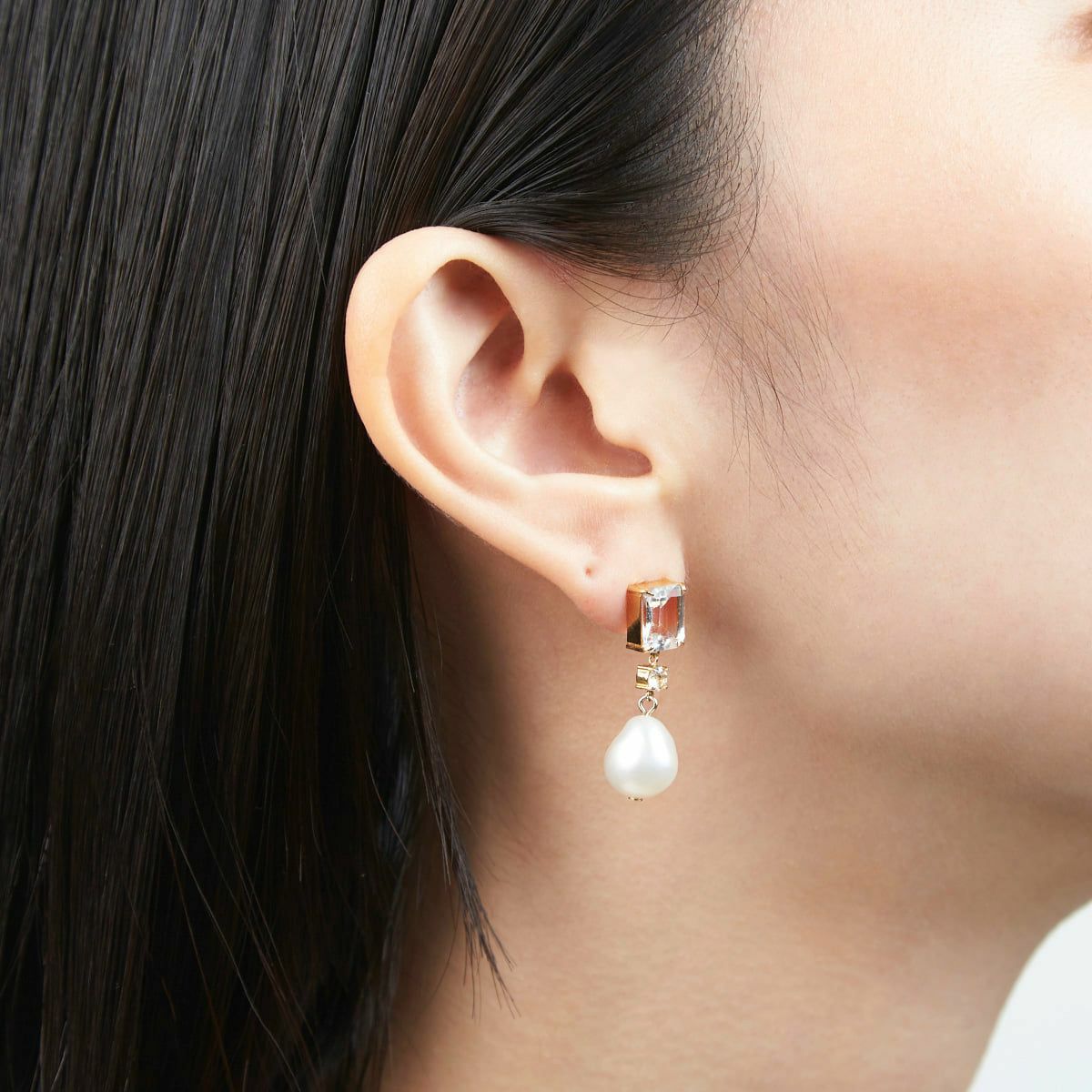 カラーストーンドロップパールピアス(Clear)