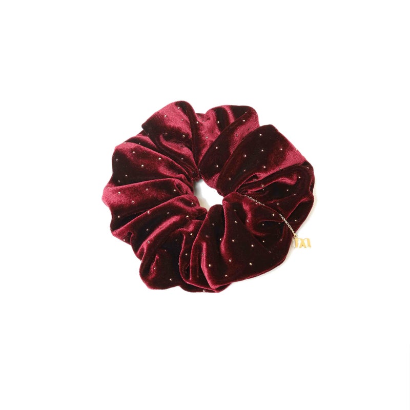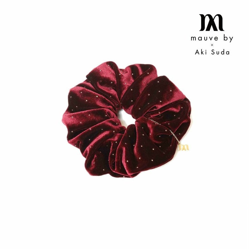 【mauve by Aki Suda】 Studded Fluffy Scrunchie (Bordeaux)