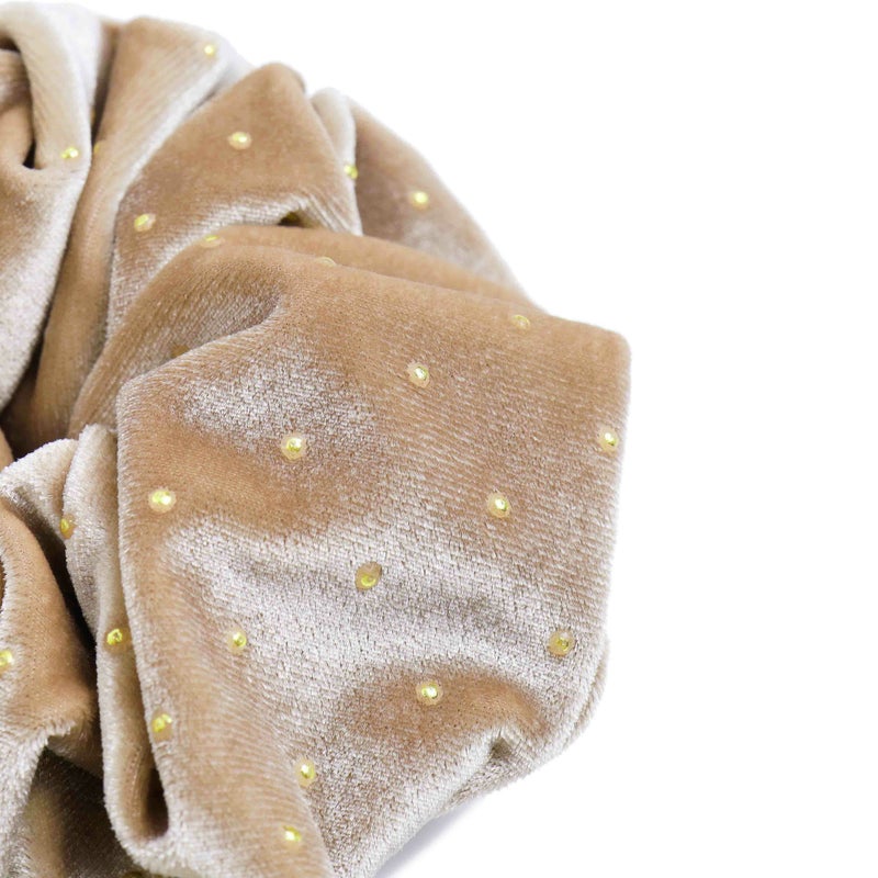 【mauve by Aki Suda】 Studded Fluffy Scrunchie (Beige)