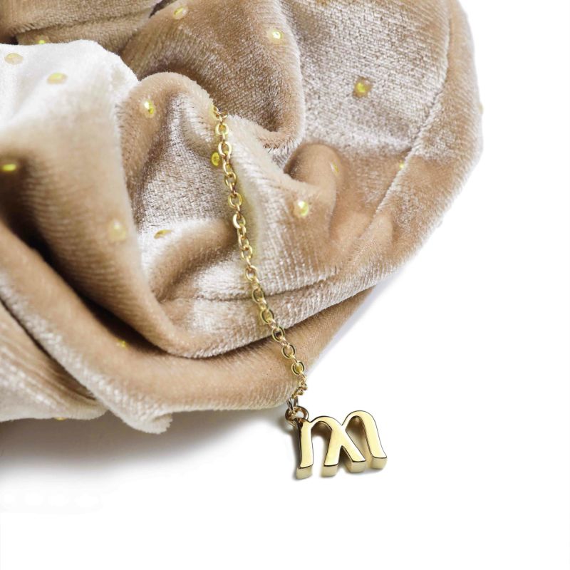 今回のコラボレーションのために誕生した、ロゴが落とし込まれたチャームが付いたシュシュ。