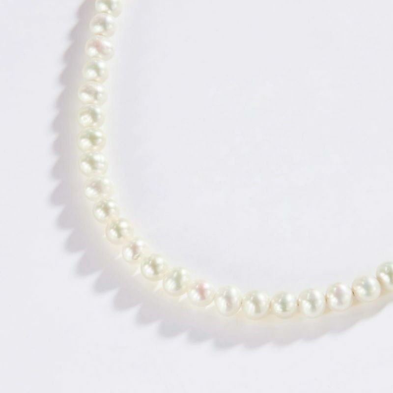 カジュアルにもフォーマルにも着けやすい5mmサイズの淡水パールネックレス。