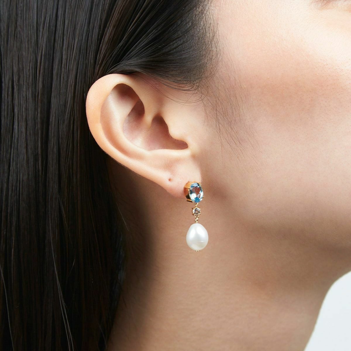 カラーストーンドロップパールピアス(Blue)
