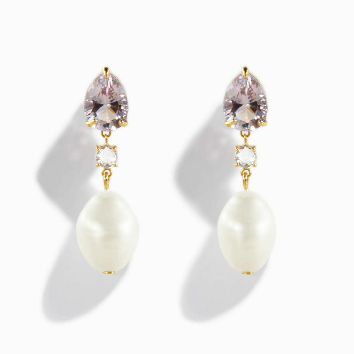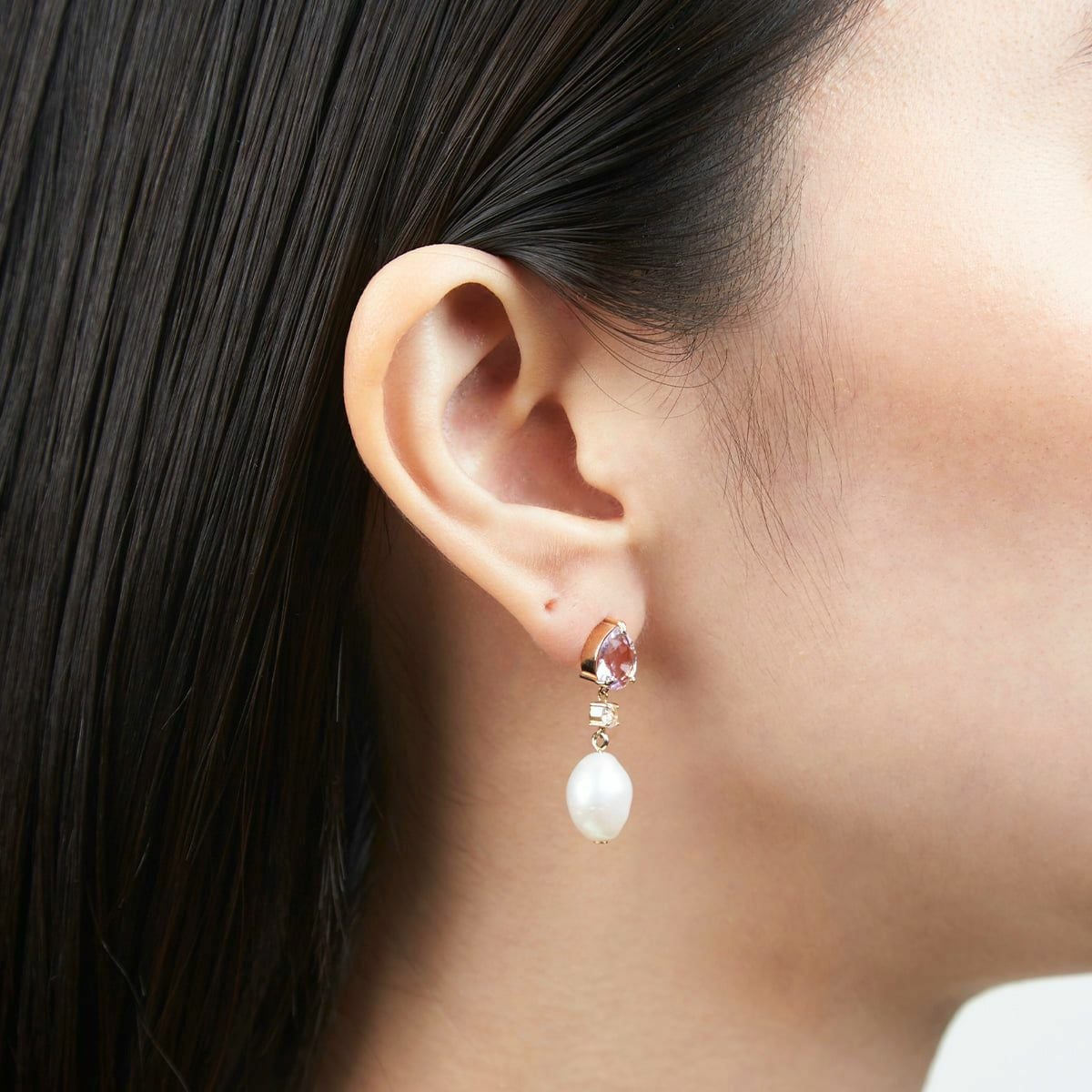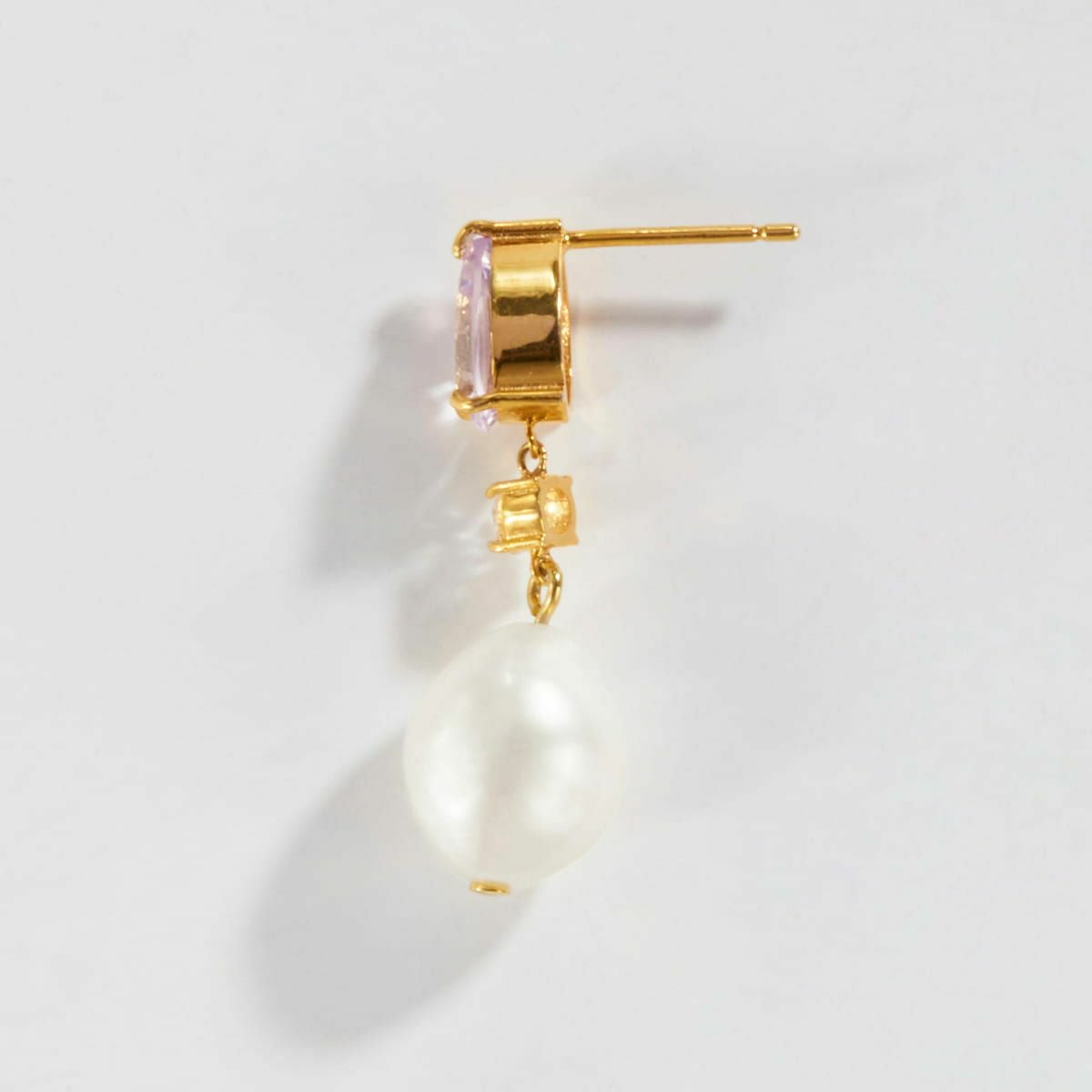 カラーストーンドロップパールピアス(Purple)
