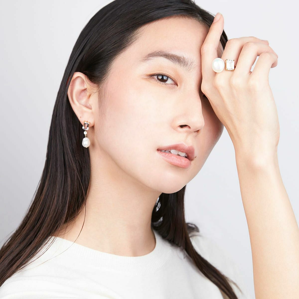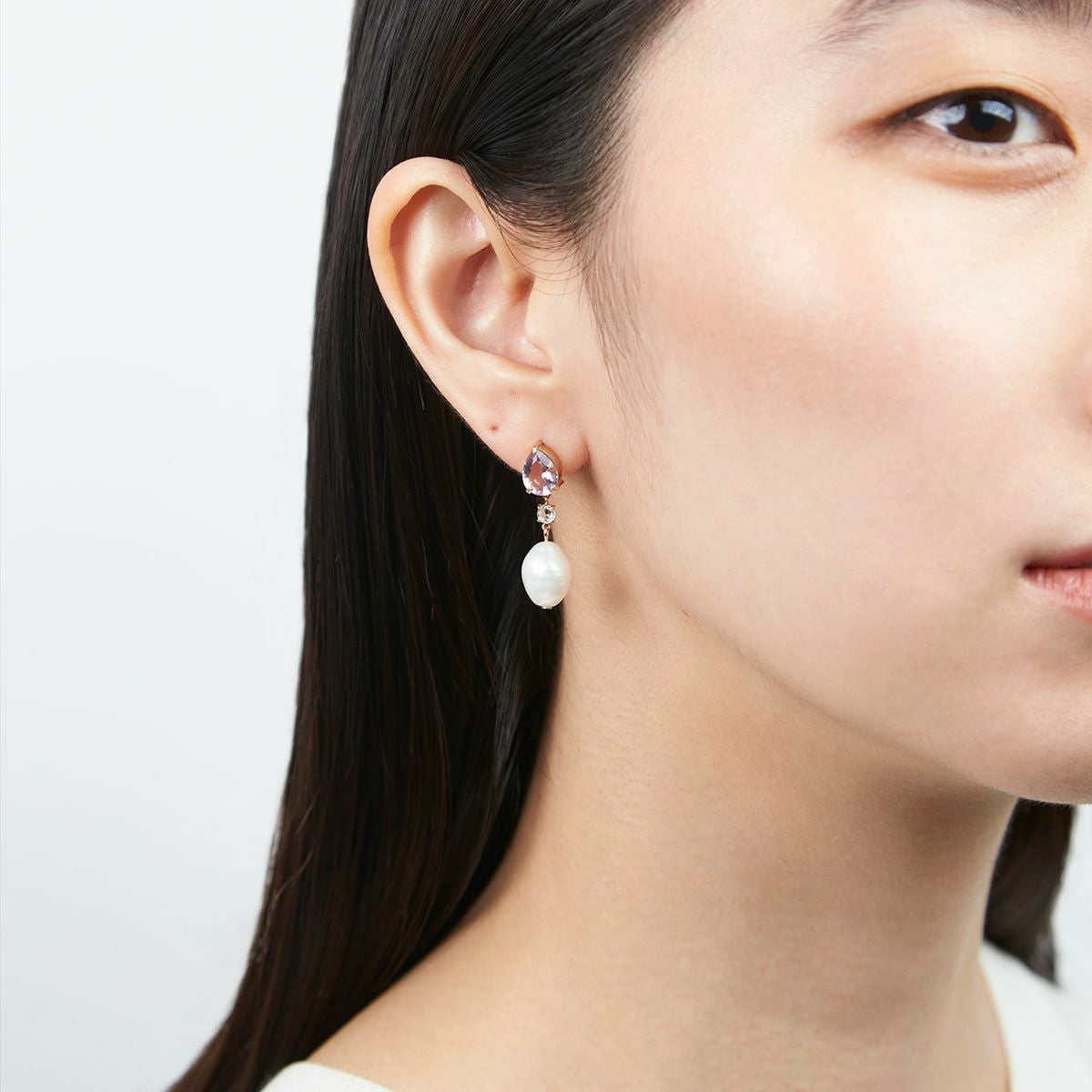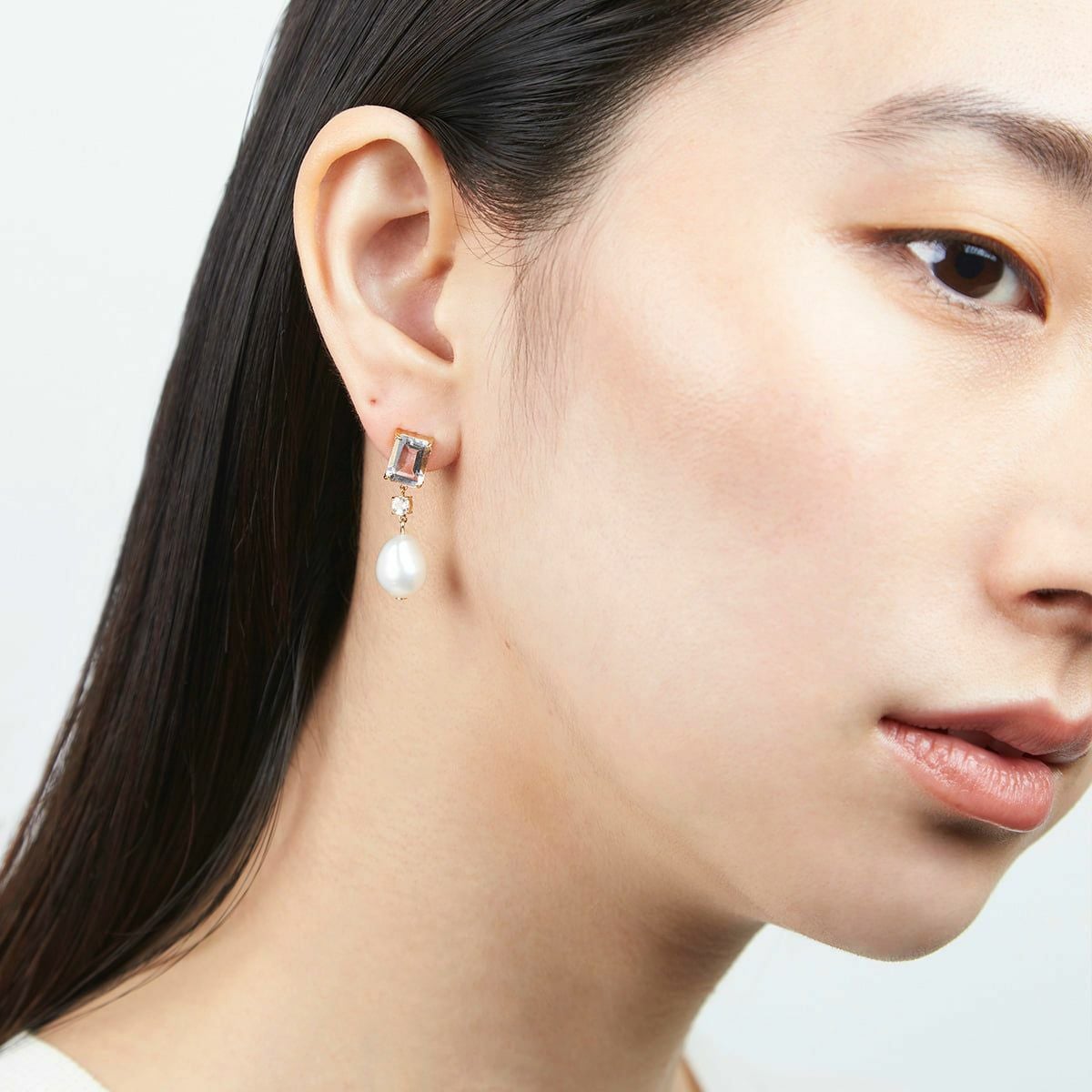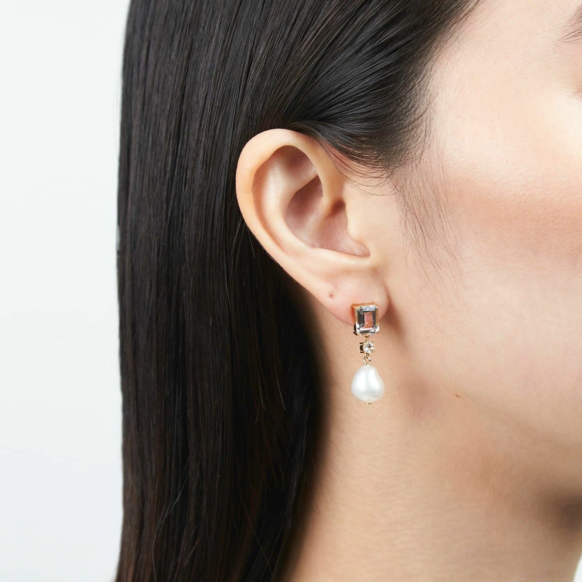 カラーストーンドロップパールピアス(Clear)