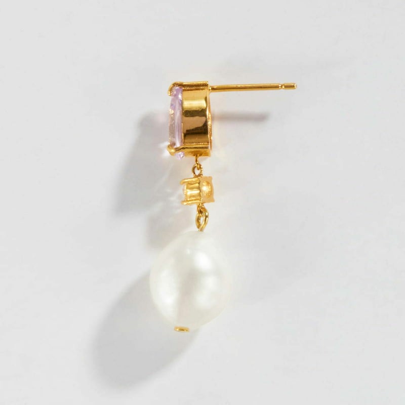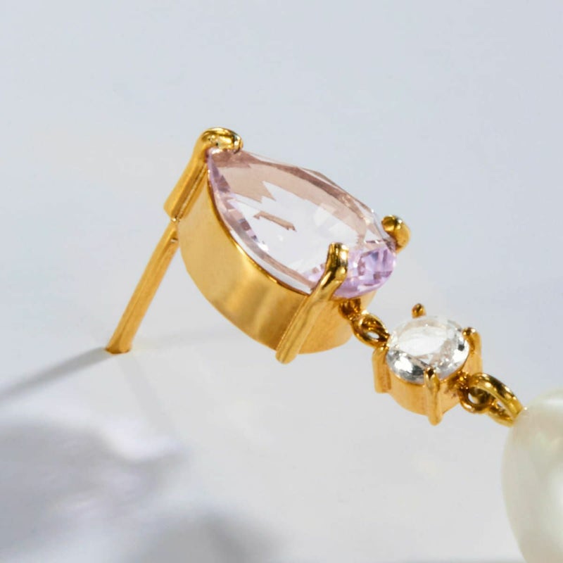 ドロップ型のライトアメジストはピンクがかった淡い紫が優しく女性らしい印象に。